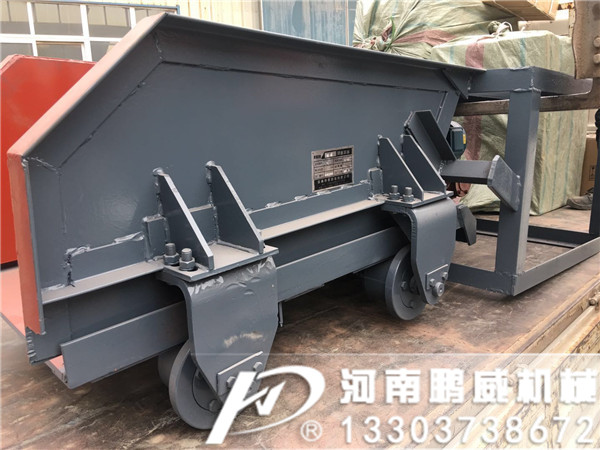 利用曲柄連桿機(jī)構(gòu)拖動(dòng)下傾5°的底板在輥上做直線(xiàn)往復(fù)運(yùn)動(dòng),當(dāng)電動(dòng)機(jī)開(kāi)動(dòng)后,經(jīng)彈性聯(lián)軸器、減速器、曲柄連軒機(jī)構(gòu)拖動(dòng)傾斜的底板在插輥上作直線(xiàn)往復(fù)運(yùn)動(dòng),將煤均勻地卸到運(yùn)輸機(jī)械或其它篩選設(shè)備上。從而把煤或其它磨琢性小,粘性不大的松散粒狀,粉狀物料從給料設(shè)備中均勻地卸到受料設(shè)備中。