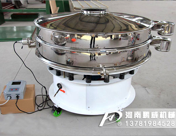 鵬威機械生產的超聲波振動篩是將220v、50HZ或110v、60HZ電能轉化為38KHZ的高頻電能,輸入超聲換能器,將其變成38KHZ機械振動,從而達到高效篩分和清網的目的。改系統在傳統的振動篩基礎上再篩網上引入一個低振幅、高頻率的超聲波振動波(機械波)在篩網上面疊加一個高頻率低振幅的超聲振動儀,超微細粉體接受巨大的超聲加速度,使篩面上的物料始終保持懸浮狀態,從而抑制粘附、摩擦、平降、等堵網因素。解決了強吸附性、易團聚、高靜電、高精細、高密度、輕比重等篩分難題,使超細微粉篩分不再難事,特別適合高品質、精細粉體的用戶使用。