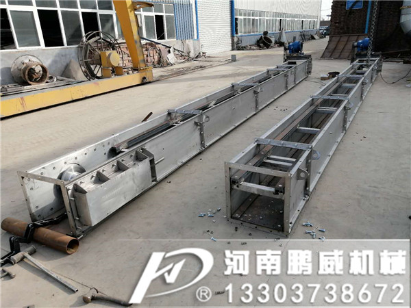 刮板輸送機(jī)的工作原理是,將敞開的溜槽,作為煤炭、矸石或物料等的承受件,將刮板固定在鏈條上(組成刮板鏈),作為牽引構(gòu)件。當(dāng)機(jī)頭傳動部啟動后,帶動機(jī)頭軸上的鏈輪旋轉(zhuǎn),使刮板鏈循環(huán)運(yùn)行帶動物料沿著溜槽移動,直至到機(jī)頭部卸載。刮板鏈繞過鏈輪作無級閉合循環(huán)運(yùn)行,完成物料的輸送。