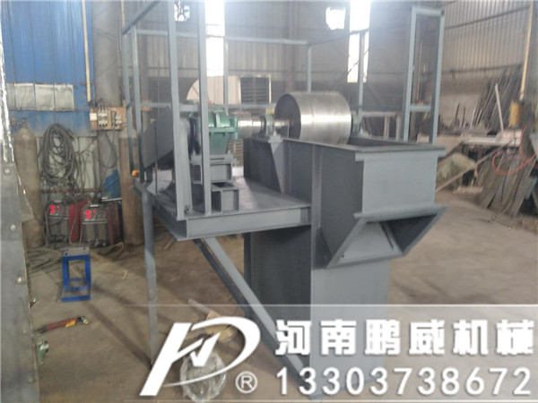 TD型斗式提升機(jī)主要由驅(qū)動(dòng)裝置、上部區(qū)段、料斗與橡膠帶、中殼體、帶檢修門(mén)的中殼體、下部區(qū)段等組成,其主要結(jié)構(gòu)特點(diǎn)是:采用橡膠帶作為牽引構(gòu)件,具有自重小、撓性好、運(yùn)行平穩(wěn)、磨損小的特點(diǎn)。殼體之間、檢修門(mén)與殼體之間處均設(shè)置有密封裝置,保證無(wú)粉塵外泄,清潔、環(huán)保。機(jī)殼和頭罩設(shè)有多個(gè)檢修門(mén),一旦出現(xiàn)故障或者需要更換料斗等易損件時(shí),可以便捷的進(jìn)行檢修或更換。在傳統(tǒng)裝置內(nèi)部設(shè)有高可靠性的逆止機(jī)構(gòu),在防止?fàn)恳洼d料料斗逆行的同時(shí),使傳動(dòng)裝置整體結(jié)構(gòu)緊湊、占用空間小。中部殼體均為折彎構(gòu)件焊接而成,在提高機(jī)殼整體剛度的同時(shí),使機(jī)殼各段節(jié)具有良好的通用性和互換性,保證組裝完畢后,機(jī)殼具有良好的垂直度。在底部設(shè)有張緊機(jī)構(gòu),保證工作時(shí)皮帶有足夠的預(yù)緊力;同時(shí)在底部滾筒裝置中帶有自動(dòng)調(diào)心機(jī)構(gòu),以防止?jié)L筒受到不均勻拉力后發(fā)生傾斜,進(jìn)而造成設(shè)備故障。