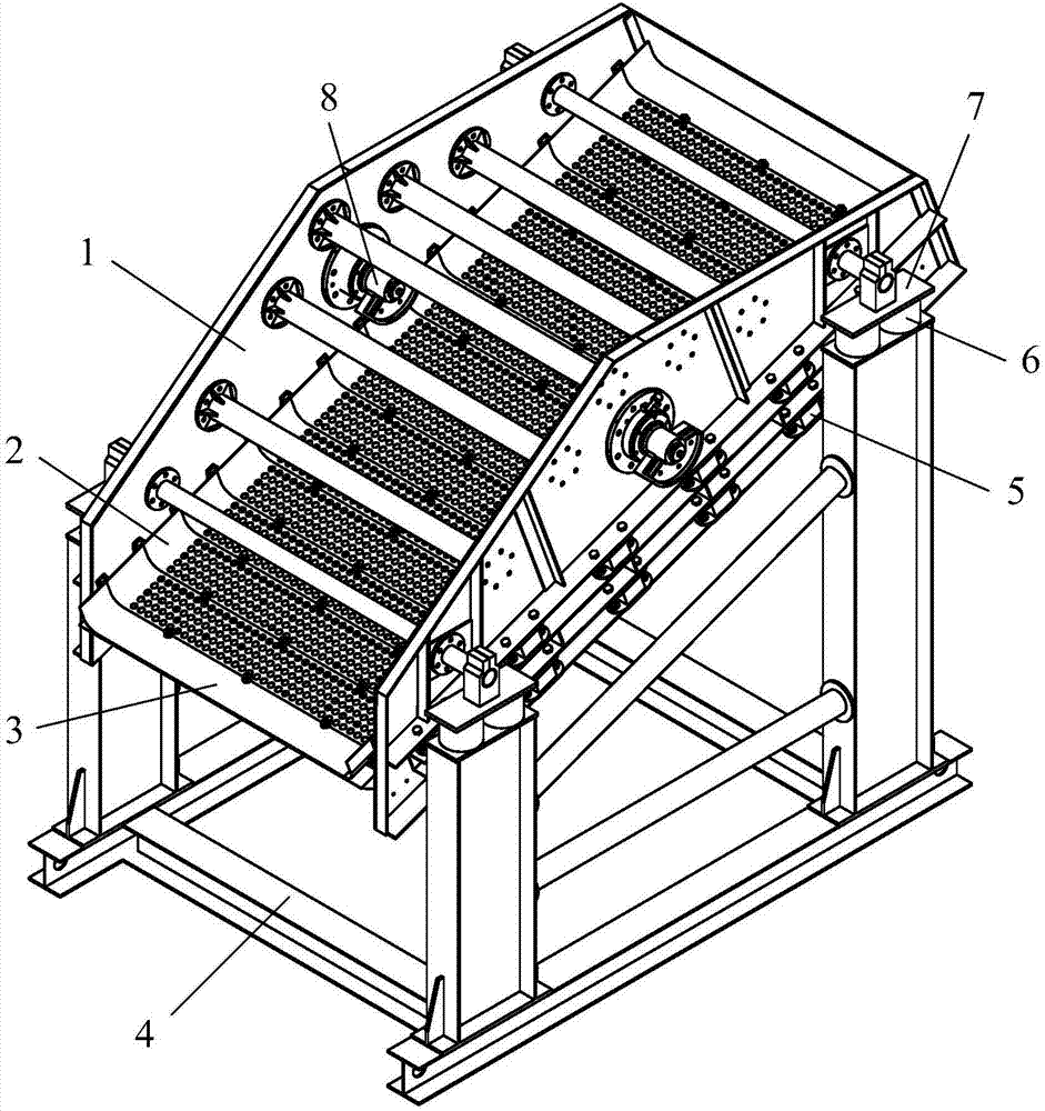 3.該設備側部“U”形設計以形成密封,側板無磨損,而且防止了篩上物進入篩下、篩板用楔形橡膠條固定,不需要任何螺栓,拆裝方便、快捷、篩分機轉動部件少,運行可靠性高,日常維護工作量少,利用率高、浮動篩框振幅可調,篩分效率高,處理量大,動負荷小,功耗少,噪聲低,因此應用較為廣泛。
